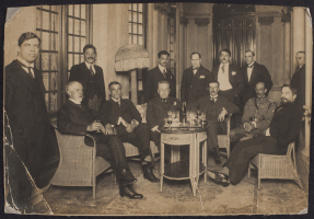 Fotografia de Júlio Prestes e outros parlamentares na Câmara Federal (Palácio Tiradentes), Rio de Janeiro. MIS
