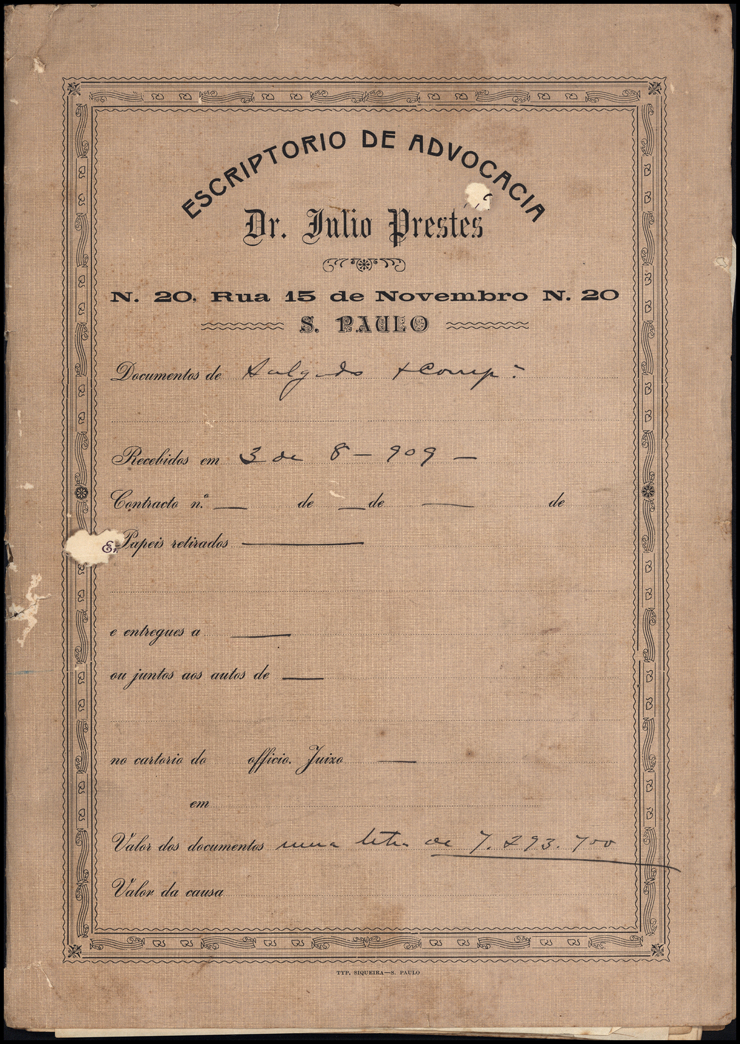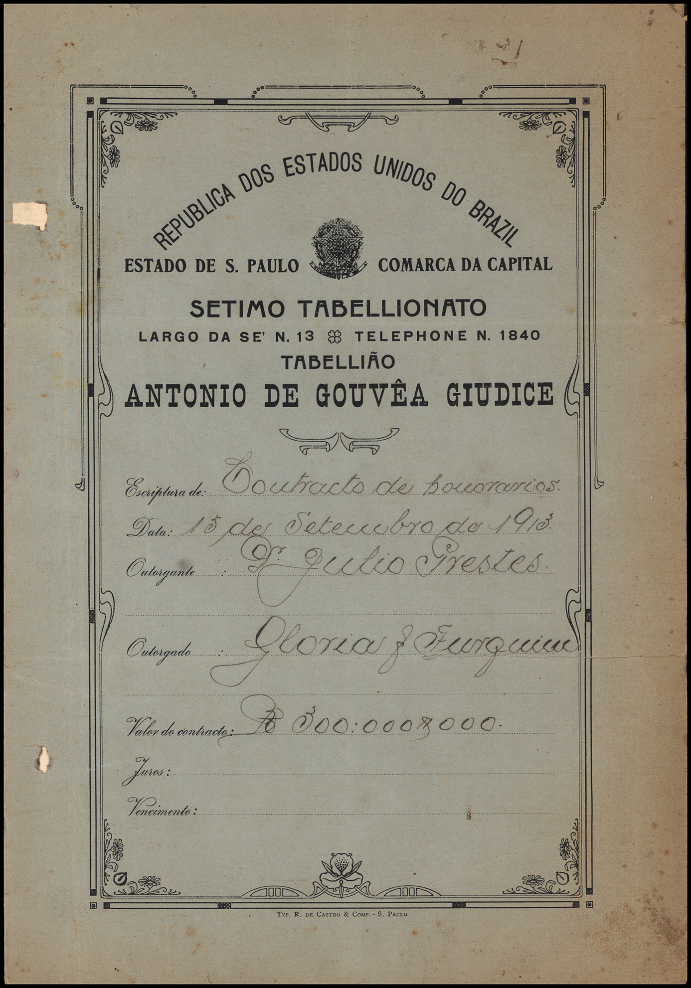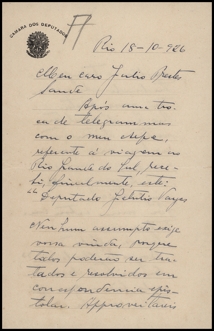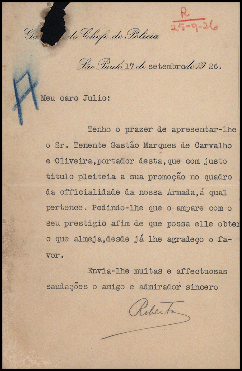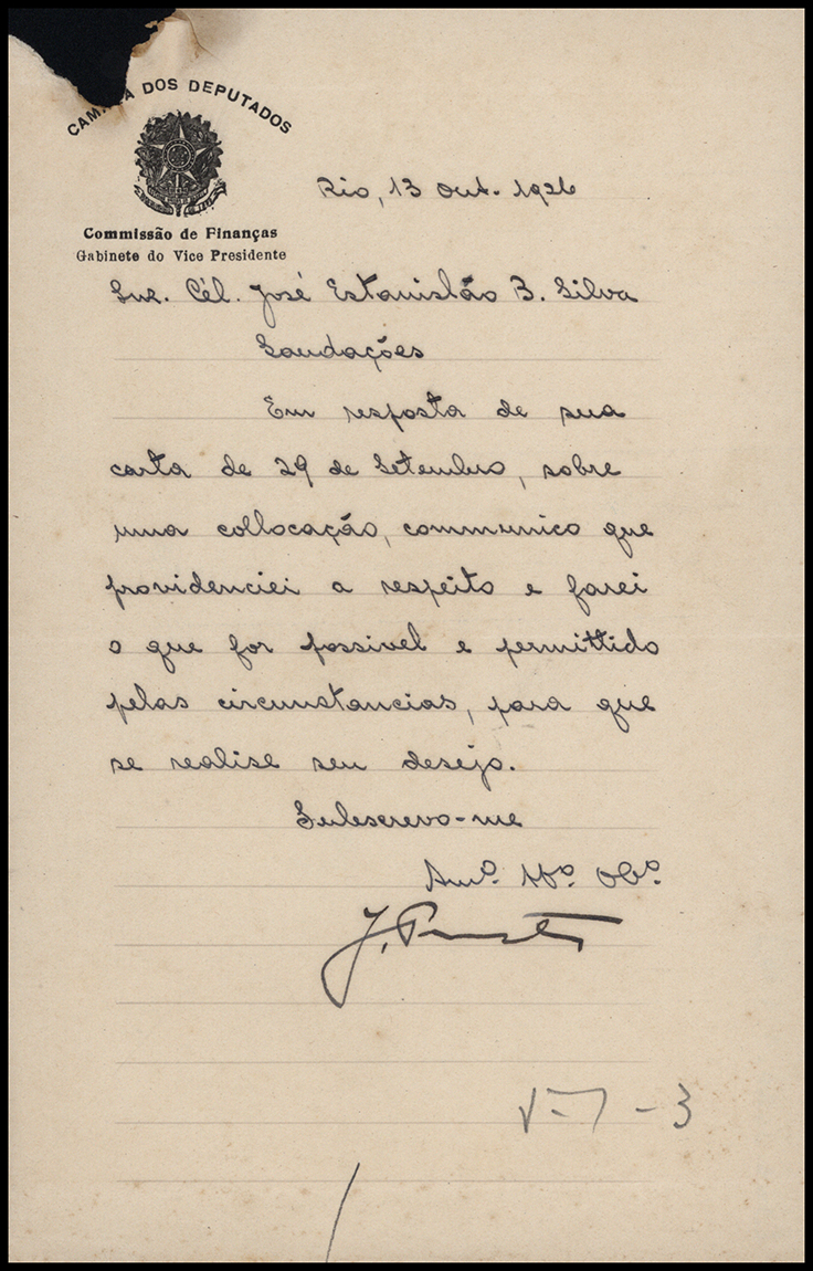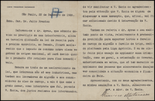 Carta de Francesco Matarazzo ao Deputado Federal Júlio Prestes, 1926. APESP