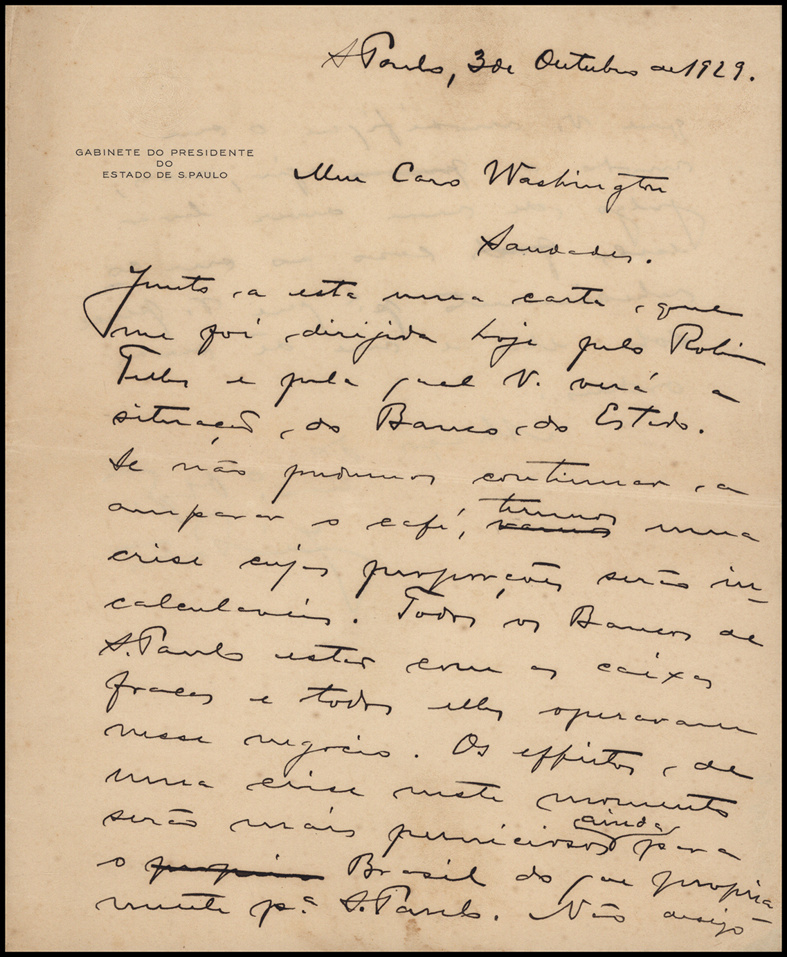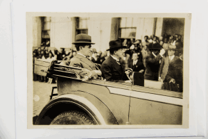 Fotografia da visita oficial de Getúlio Vargas, presidente do estado do Rio Grande do Sul, a Júlio Prestes, São Paulo, 1928. APESP