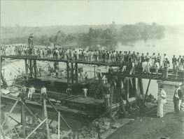 Fotografia da construção de ponte para Estrada de Ferro Mairinque-Santos, 1930. APESP