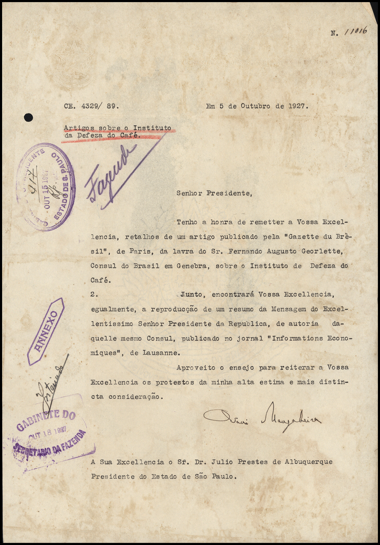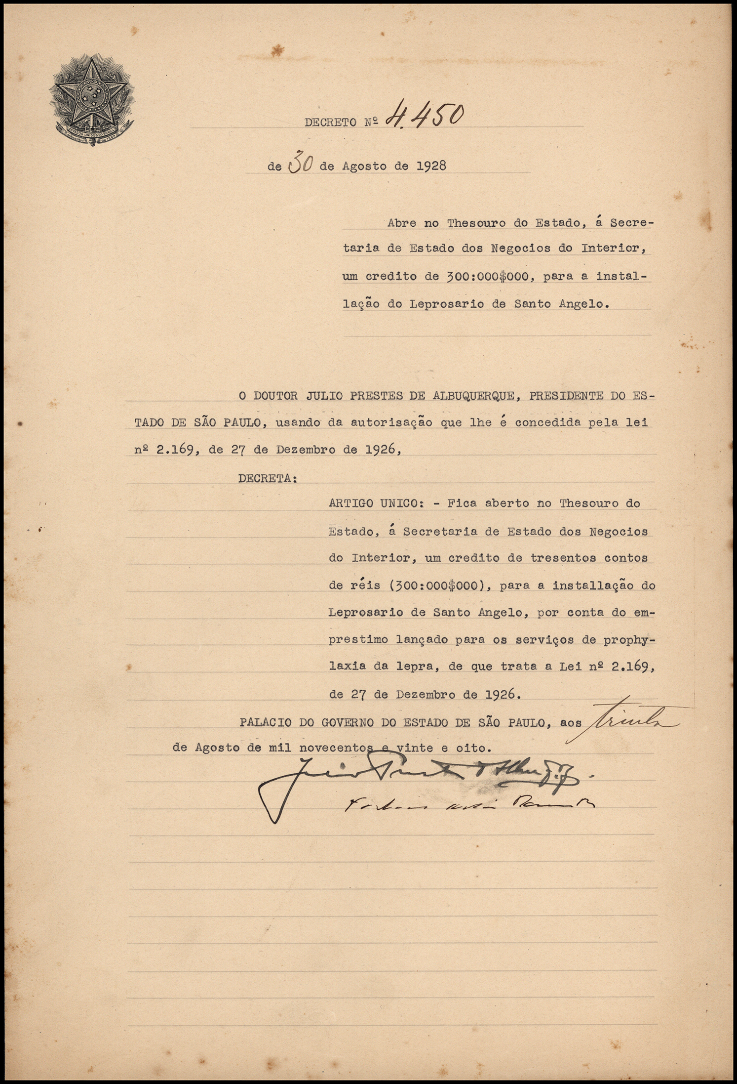 Decreto estadual de abertura de tráfego da Companhia Mogiana, São Paulo, 1928. APESP