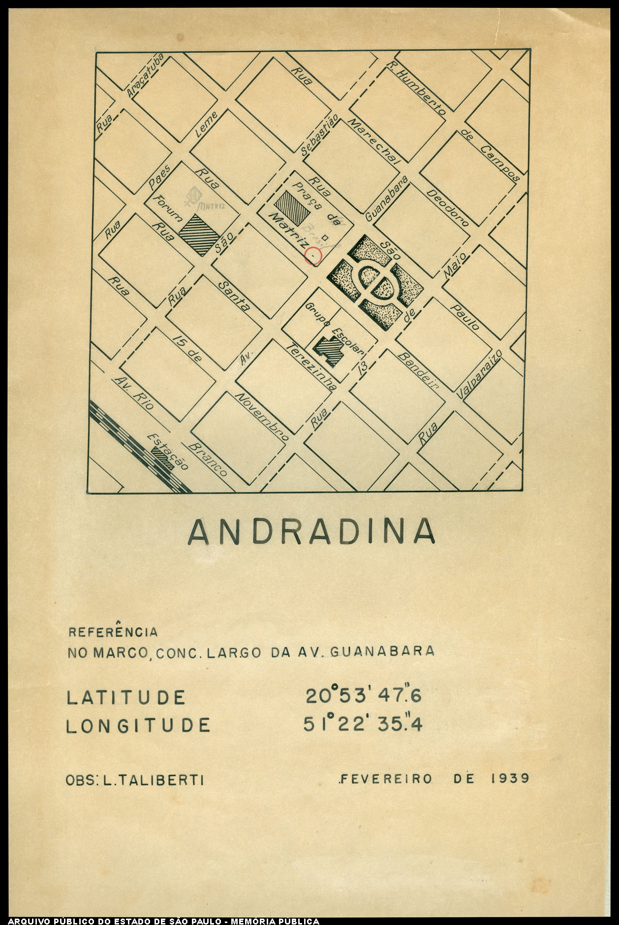 ANDRADINA. Referência no Marco, Conc. Largo da Av. Guanabara. São Paulo, 1939. 1 mapa. Acervo APESP. Fundo SACOP.